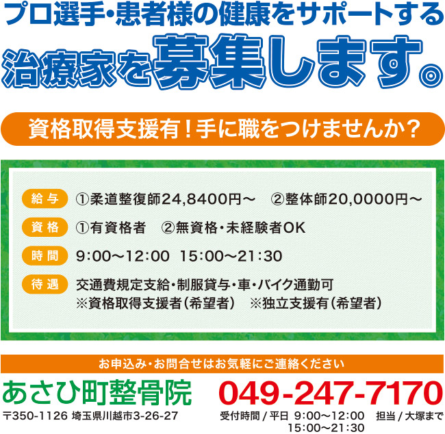 私は数百万円以上のお金をかけて学んできた技術を先生方にも学んでいただける環境を用意しておりますので川越市で柔道整復師や鍼灸師、整体師の資格をお持ちの方は是非当院にご相談下さいませ。