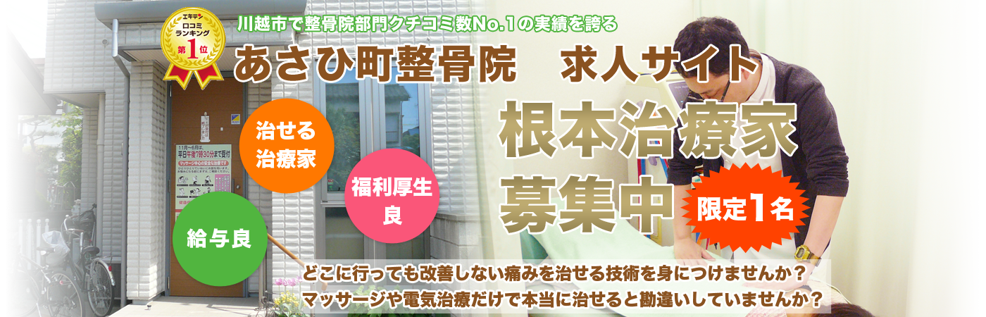 川越市で接骨院・整骨院の求人をお考えの求職者様には良い情報になると思いますが当院は全員は国家資格を有した治療家になりますのと同時に、慰安目的ではなく患者様の痛みが再発しない根本治療を心掛けておりますので患者様からの喜びの声を