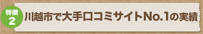特徴1と前途しますが川越市の大手口コミサイトでも№1の実績を頂くことができました。